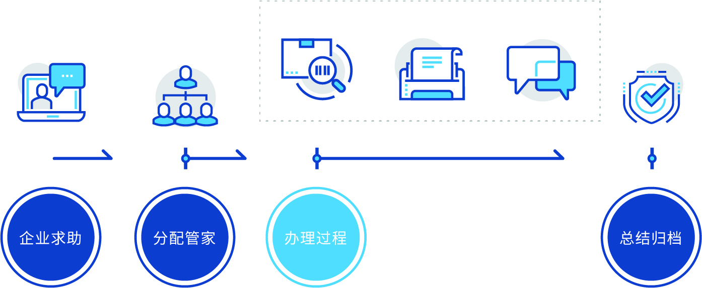 當企業(yè)有復雜問題時,平臺提供業(yè)務管家為企業(yè)提供全程協(xié)助,并記錄幫辦過程,接收企業(yè)滿意度評價。