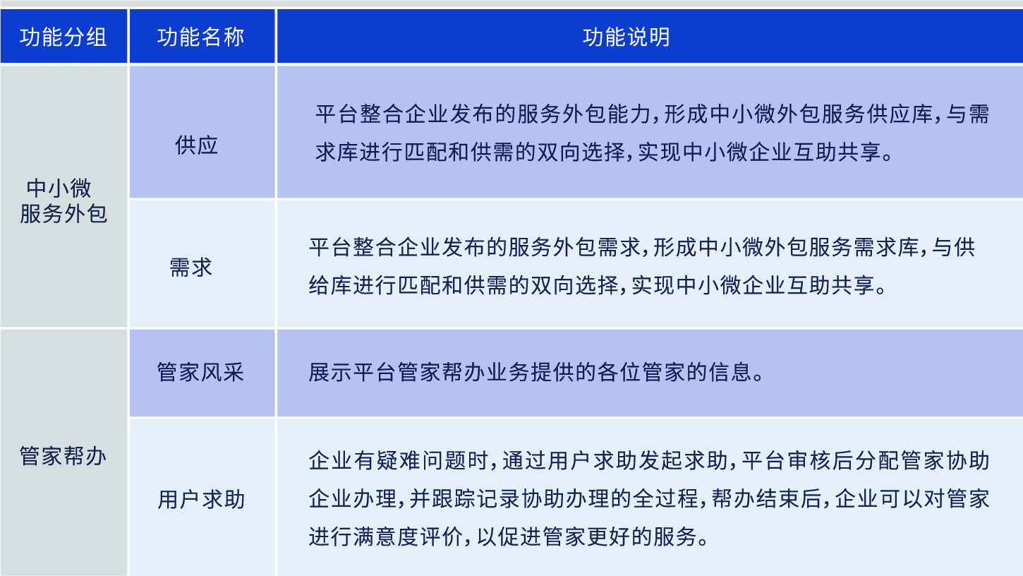 提供中小微企業(yè)供需發(fā)布平臺,實現(xiàn)供需精準匹配和雙向選擇,促進中小微企業(yè)的互助共享,降低中小微企業(yè)投入成本。