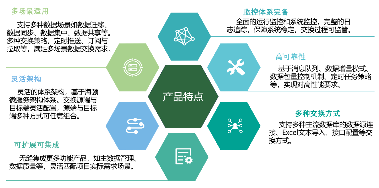 數(shù)據(jù)交換管理平臺(tái),是海頤軟件自主研發(fā)的數(shù)據(jù)交換平臺(tái),基于互聯(lián)網(wǎng)時(shí)代數(shù)據(jù)交換需求的設(shè)計(jì),支持服務(wù)接入,采集、處理、存儲(chǔ)和交換。通過多種傳輸通道、多種數(shù)據(jù)交換方式和交換標(biāo)準(zhǔn),統(tǒng)一數(shù)據(jù)交換標(biāo)準(zhǔn)、統(tǒng)一交換渠道,實(shí)現(xiàn)數(shù)據(jù)中心級聯(lián)和數(shù)據(jù)采集。